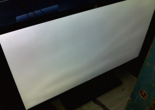以24 英寸液晶模组为例。24 英寸液晶模组整机组装及老化后出现严重的压迫式漏光现象,如图1 所示。针对压迫式漏光,最关键的是释放受力液晶分子受到的压力。